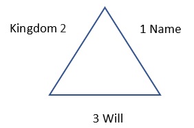 Imagine an equilateral triangle in the 6 petaled lotus, with the first three petitions forming its three sides. The first petition must become a living line, then the second petition and finally the third. All the lines must be alive. First the two sides, then the baseline: Thy will be done. This is shown in the following diagram: